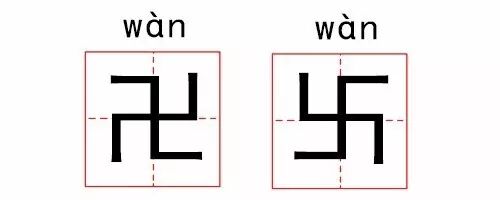 直到武则天的周朝,才被列为汉字,读作wàn。因为是符号,所以其实两种朝向都对,但是由于德国纳粹抢注了后一种,它就变得不好了。