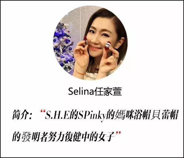 好的,下面文字君来给大家断个句:“S.H.E的S,Pinky的媽咪,浴帽貝蕾帽的發明者,努力復健中的女子。”