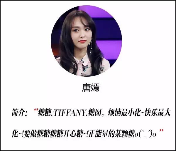唐嫣在简介里列举了一系列昵称,每一个都甜到哀伤。由此看来,唐嫣本人真的和她演的戏一样傻白甜呢!
