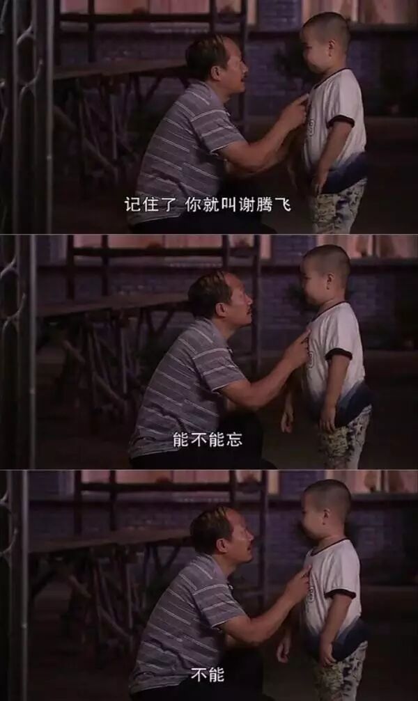 谢腾飞本是王小蒙和谢永强抱养的儿子,一开始名字叫王欢,他的初次亮相是在福利院被领养时: